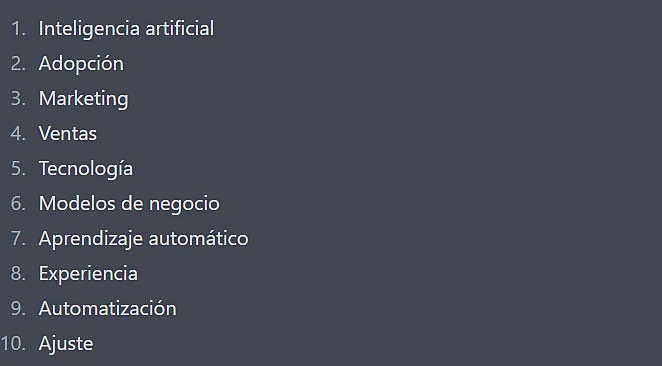 Preguntémosle a ChatGTP cuáles son las 10 palabras más buscadas sobre el tema. Este, es el resultado: