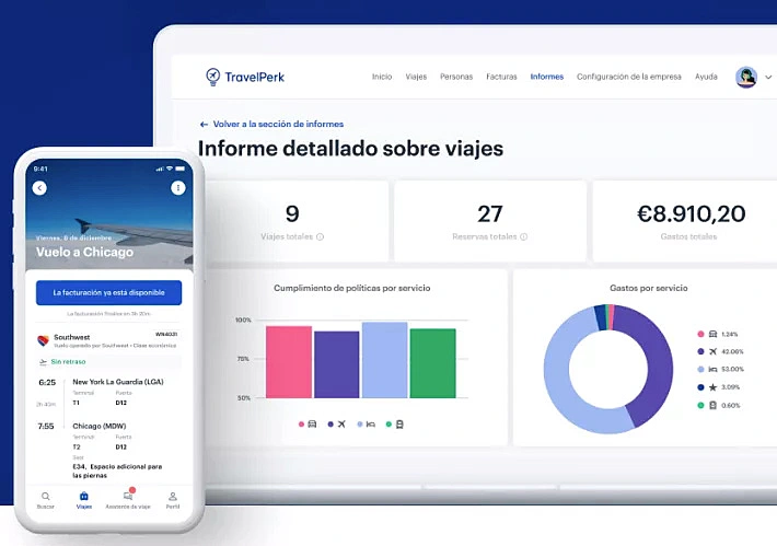 Además, uno de los grandes quebraderos de cabeza es coordinar de manera ágil los eventos de empresa o los desplazamientos. En este sentido, puedes gestionar los viajes de empresa con TravelPerk, con facilidad de reserva, control de cumplimiento de las políticas de viaje, optimización financiera y mucho más.