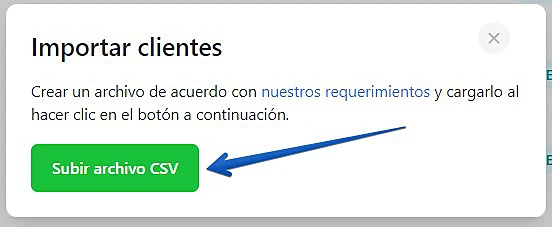 En la parte superior de la página de CRM, haga clic en la opción 'Importar cliente', como se muestra en la imagen a continuación, y luego seleccione 'Subir archivo CSV'.