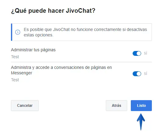 Nota: este proceso es requerido por Facebook para mantener a salvo los datos de su cuenta y por medidas de seguridad. NO es un requisito de JivoChat
