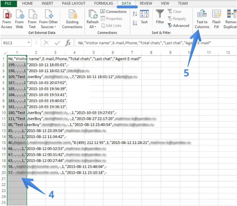 5.Haga clic en el botón "Texto en columnas" "Datos" en la cinta y.