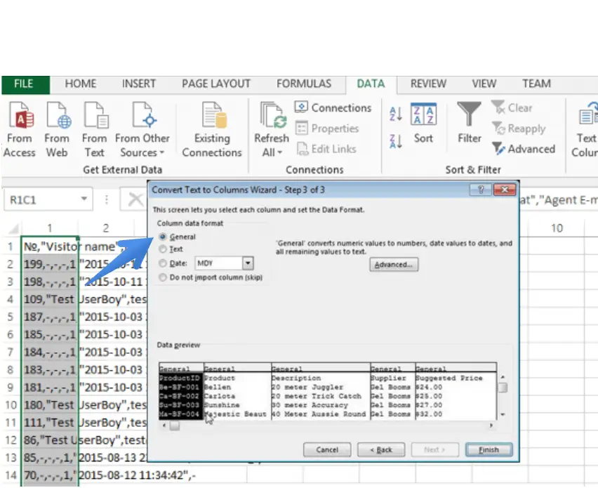 8.En la última etapa de elegir el formato de "General" de datos y pulse el botón "Finalizar".