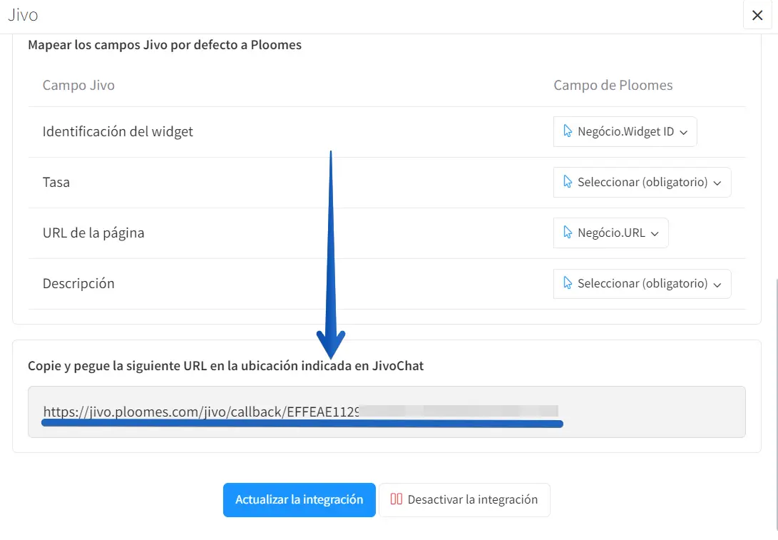 Método 2: Integración a través del panel de Ploomes y Webhooks en JivoChat