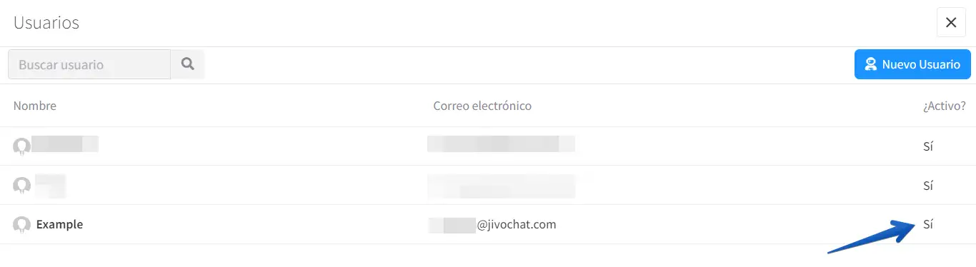 Confirme que el nuevo usuario esté activado y haga clic en la parte superior en las configuraciones.