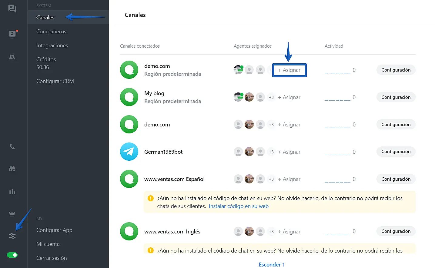 Con esta herramienta podrá asignar un agente para que responda chats de un canal que ya ha creado, sitio web, redes sociales, correo electrónico o teléfono.